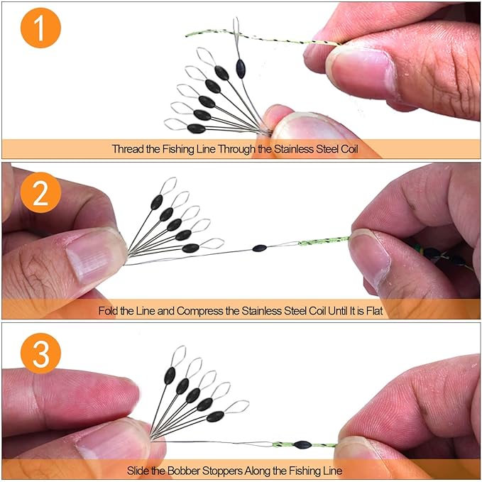 - Usage and Function: Thread the Fishing Line Through the Stainless Steel Coil, Then Adjust the Fishing Bobber Stoppers Along the Fish Line. It Can Securely Hold Spinners, Floats or Sinkers at a Specific Point on the Fishing Line, While Also Preventing Entanglement of the Fishing Line.