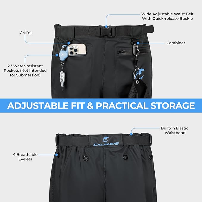 • Complete Wader Kit: The Calamus WaveWalker Waist Waders come with a durable hanger for easy drying and storage. Two moisture-wicking insoles improve comfort, absorb sweat, and help keep feet dry and odor-free during long fishing trips.