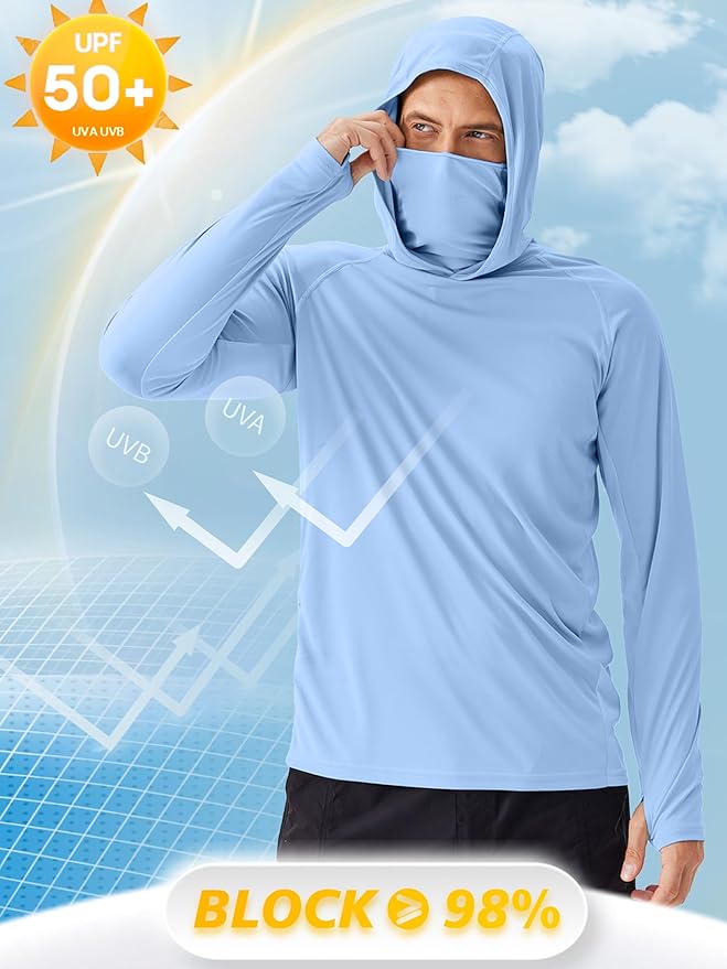 - 【UPF 50+ UV Sun Protection】The uv long sleeve shirt men features High-end UPF 50+ UV protection technology, effectively blocking 99% more UVA and UVB rays, keeping your sensitive skin safe and comfortable in the summer.
