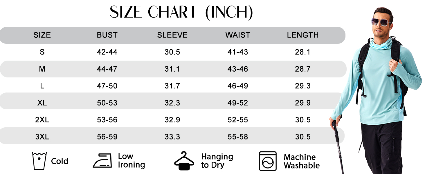 - 【Warm Reminder】:Our uv protection men fishing shirt can Machine Cold Wash. Durable fabrics keep from pilling and shrinking after repeated washing. Please check the Size Chart in the picture carefully before ordering, Please do not hesitate to contact us if you have any questions, thanks!