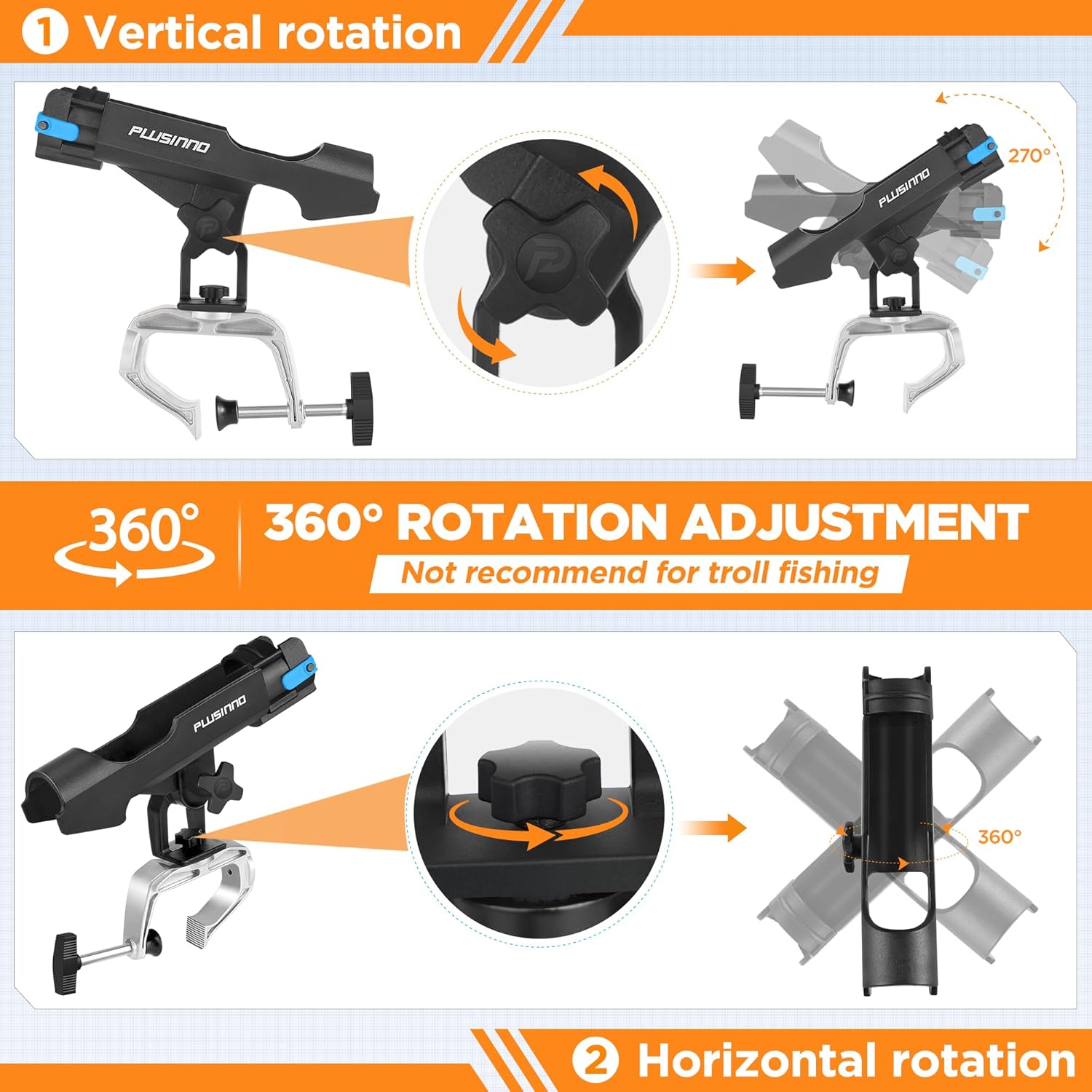 - 【Universal Fit】- Accommodates Spinning, Casting and Spincast rod handles,360 degree adjustable,Rod Holder makes it easy to access your rod and put it into the perfect position.