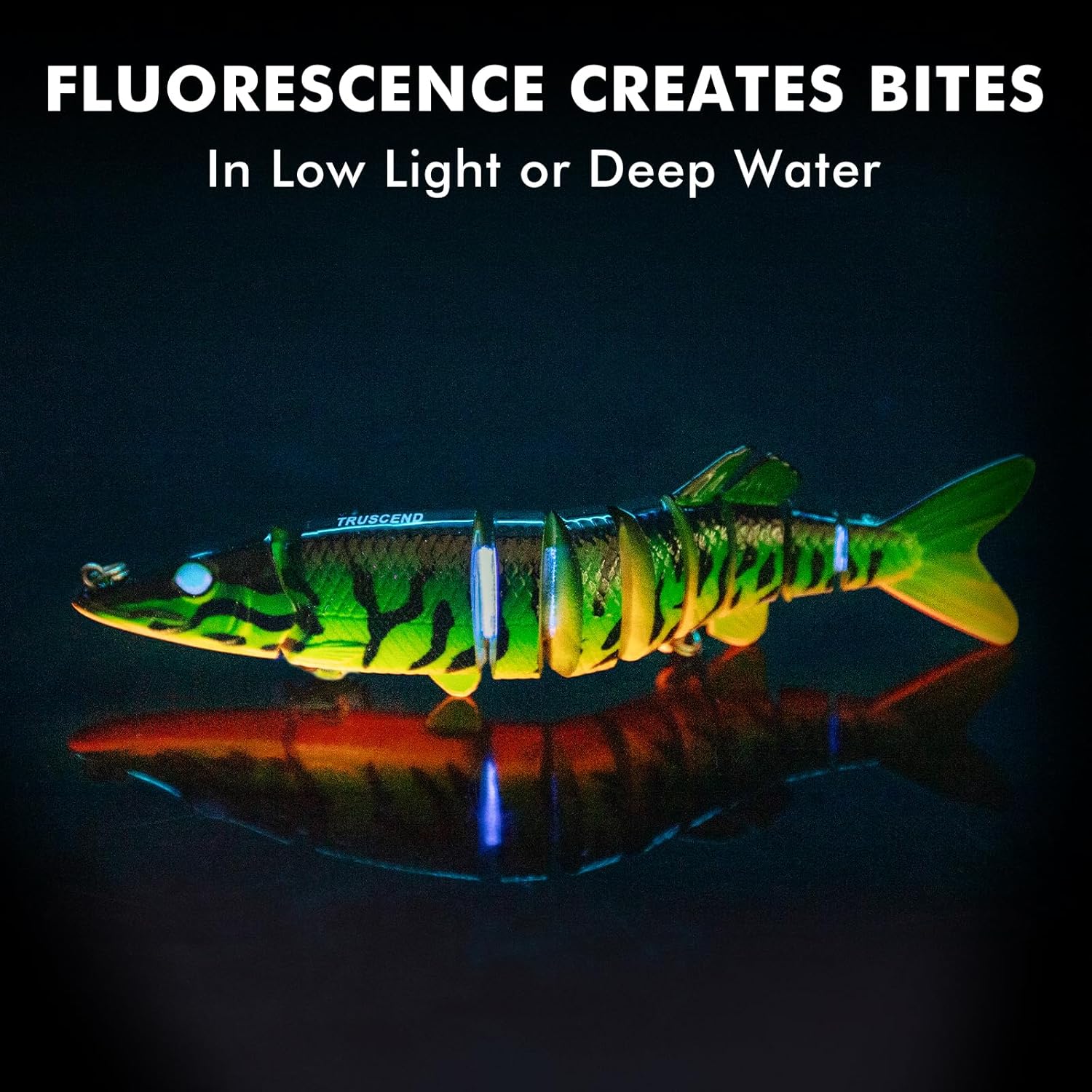 - 8 SEGMENTS LIFELIKE PIKE – Designed with 8 segment multi-jointed body, TRUSCEND fishing lure can sink slowly and move flexible in water. In addition, life-like swimming actions make it attracting more catches and provoking predator fish to strike.