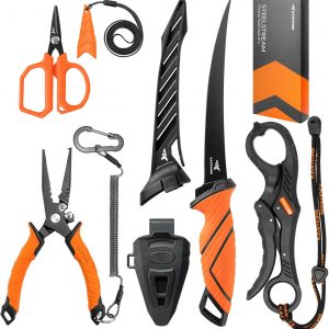 KastKing SteelStream Fishing Tool Set, Fishing Gear – Corrosion Resistant Fishing Pliers, Fillet Knife, Fishing Scissors, Fish Lip Gripper, Multi-Functional Jaw