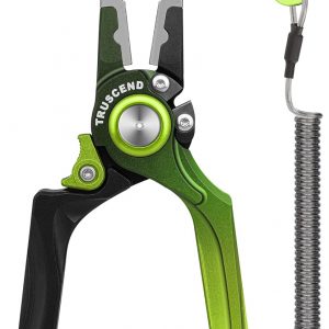 TRUSCEND Lockable Handy Fishing Pliers with Innovative Ergonomical Handle, Corrosion Saltwater Resistant Teflon Coated Fishing Tool, Multi-Function Fishing Gear with Mo-V Cutter, Fishing Gifts for Men