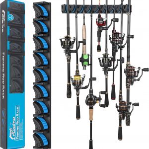 PLUSINNO Vertical Fishing Rod Holder, Wall Mounted Fishing Rod Rack, Fishing Pole Holder Holds Up to 9 Rods or Combos, Fishing Rod Holders for Garage