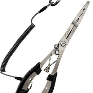 Professional 8.4 Inch Fishing Pliers with Safety Lock, Multi-Function Long Nose Hook Remover, Line Cutter, Crimper, Rustproof Stainless Steel Fishing Tool for Saltwater & Freshwater