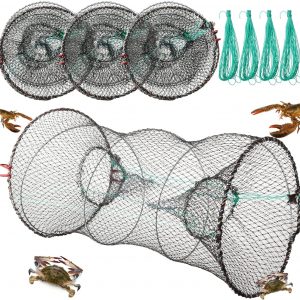 Zopeal 4 Pack Fishing Bait Trap Crab Trap Minnow Trap Crawfish Trap Lobster Trap Crayfish Shrimp Trap Net Portable Collapsible Fishing Traps with 49 Ft Rope Folded Fishing Accessories, 12 x 24 Inch
